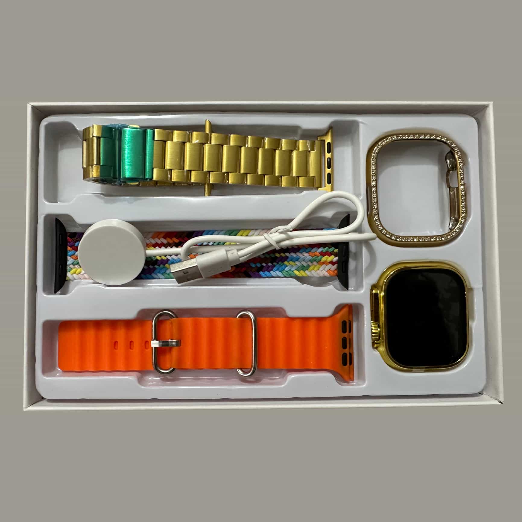 - Battery Life: Smartwatch: Up to 7 days, Earbuds: Up to 5 hours